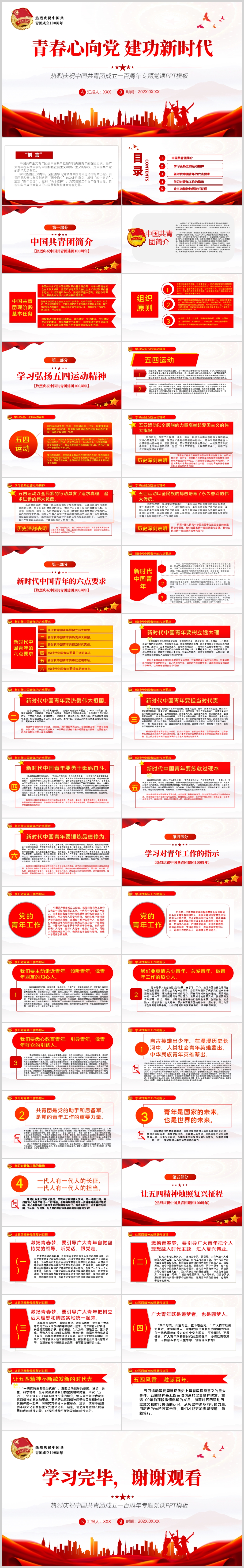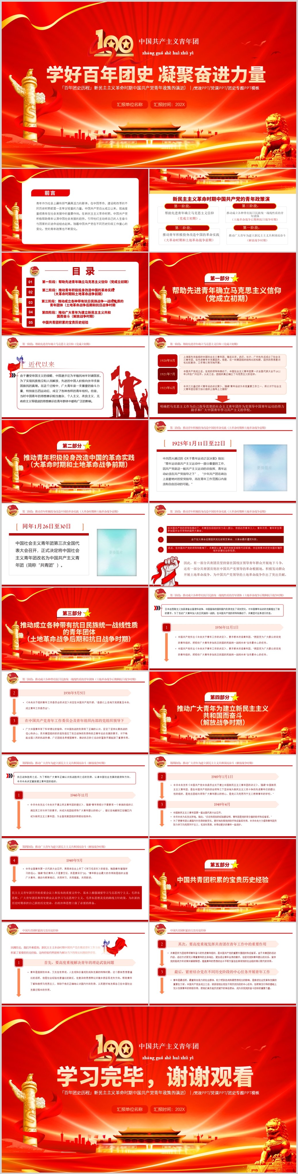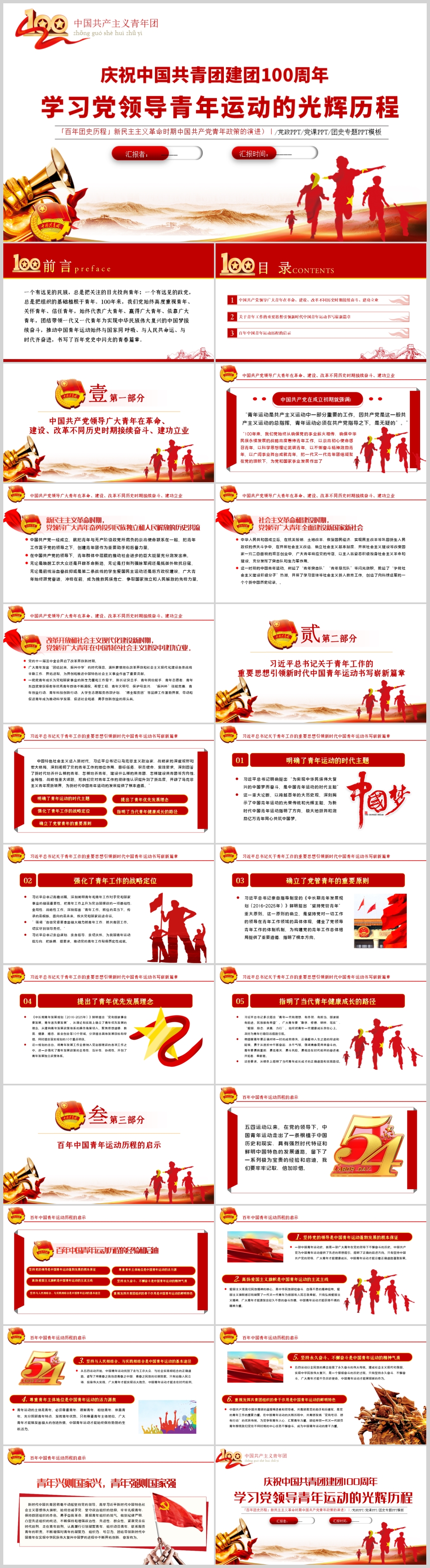 党领导中国青年运动的光辉历程共青团建团100周年专题PPT模板(内含WORD演讲稿