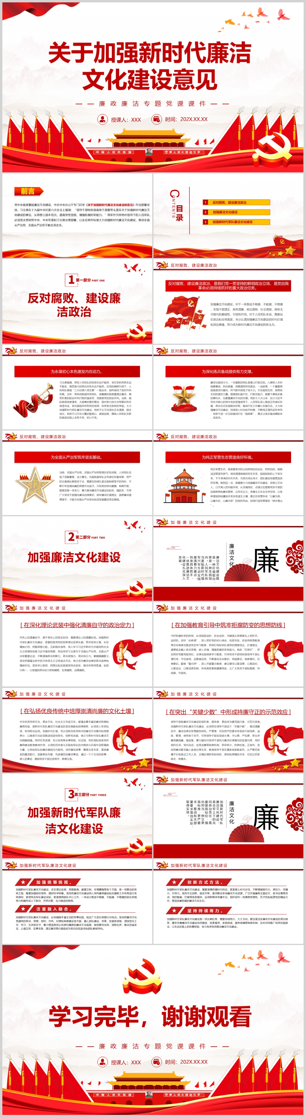 关于加强新时代廉洁文化建设的意见解读PPT模板(内含WORD演讲稿)