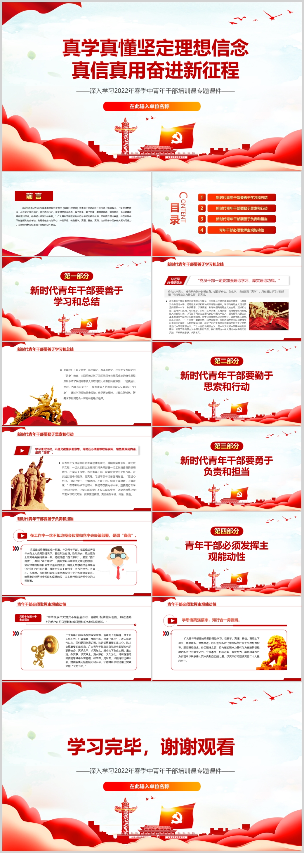 深入学习2022年春季中青年干部培训课专题课件PPT模板(内含WORD演讲稿)