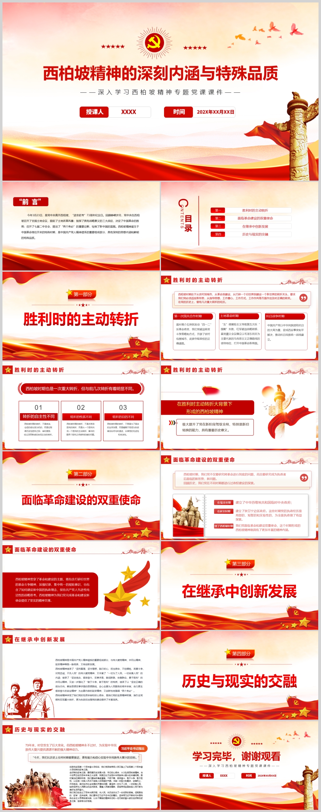 深入学习西柏坡精神专题党课课培训PPT模板(内含WORD演讲稿)