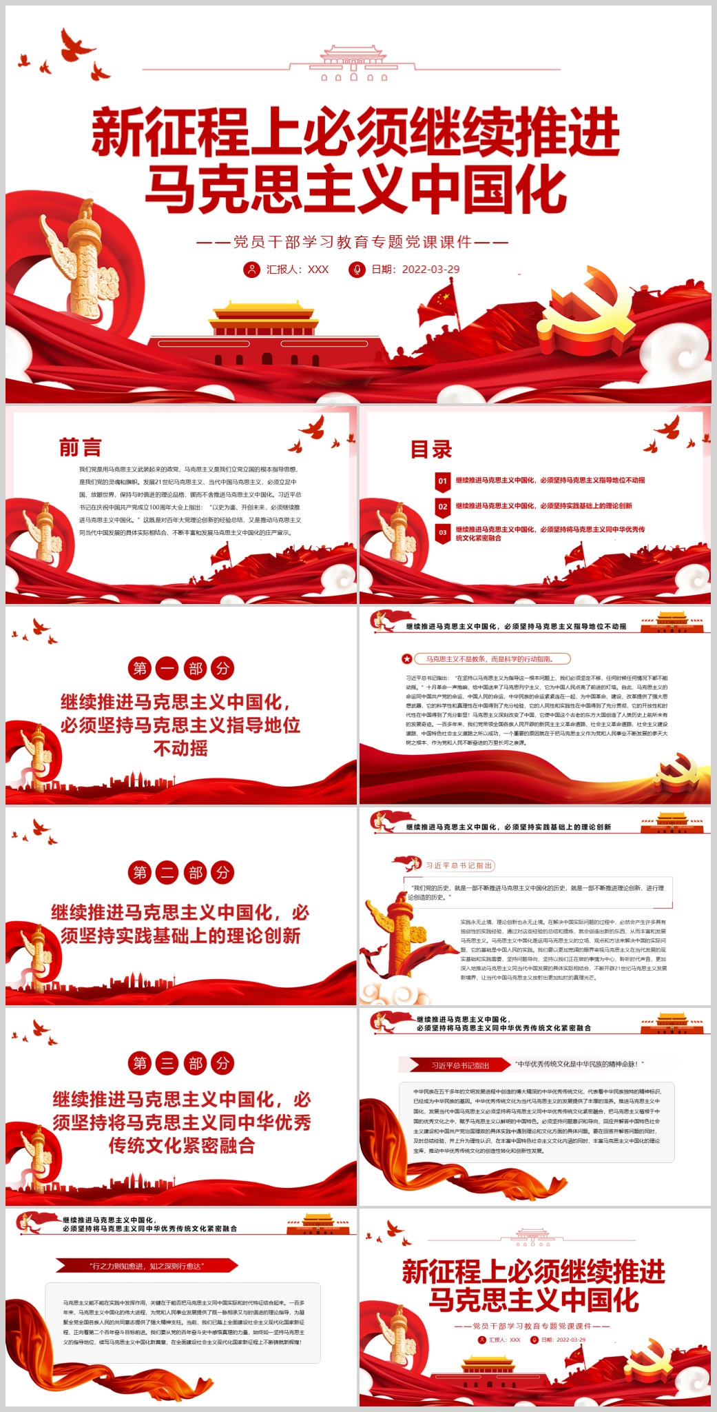 马克思主义中国化党政党支部专题党课党建PPT模板(内含WORD演讲稿)