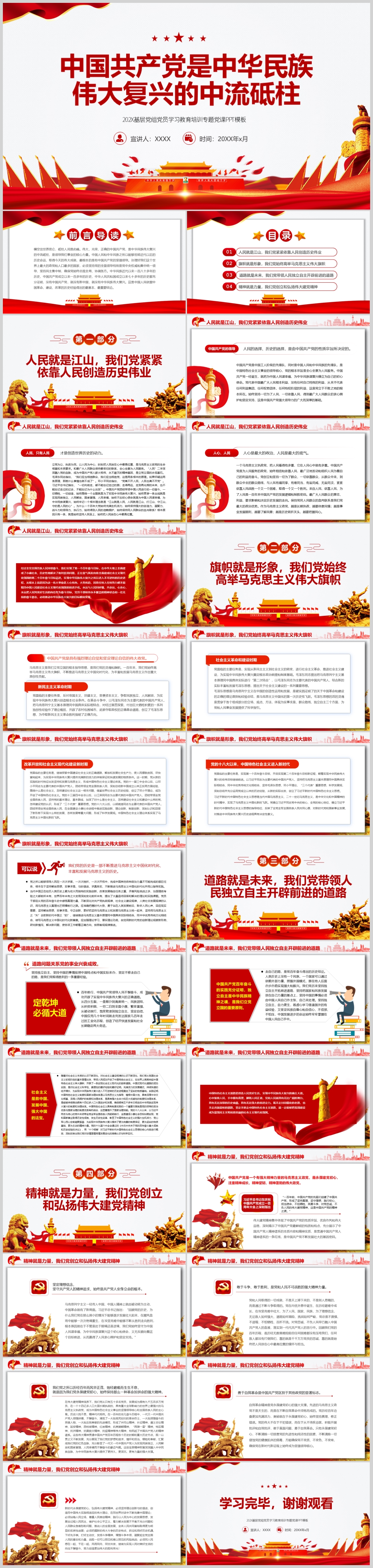 202X基层党组党员学习教育培训专题党课PPT模板(内含WORD演讲稿)