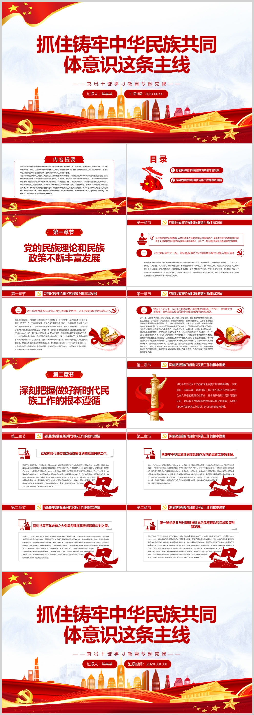 抓住铸牢中华民族共同体意识这条主线工作会议PPT模板(内含WORD演讲稿)