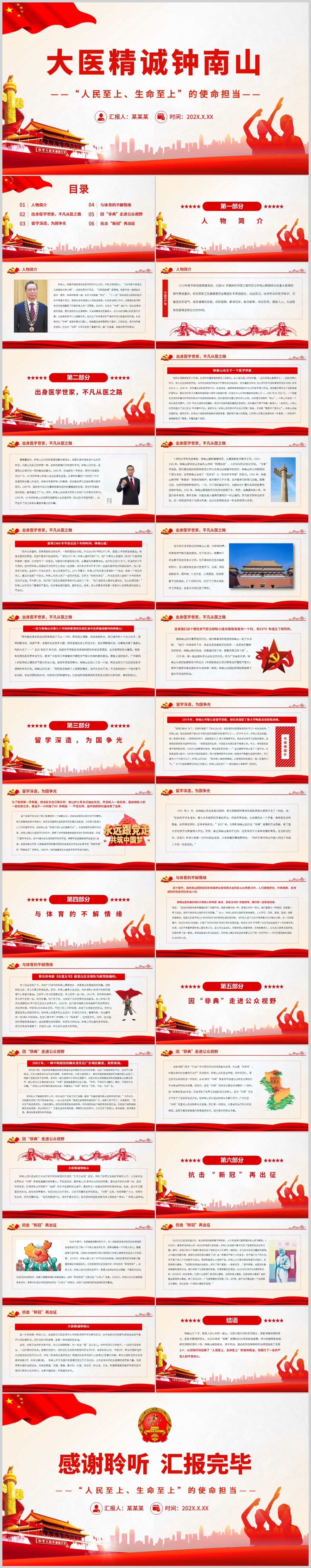 钟南山院士先进事迹抗疫故事ppt团课模板(内含WORD演讲稿)