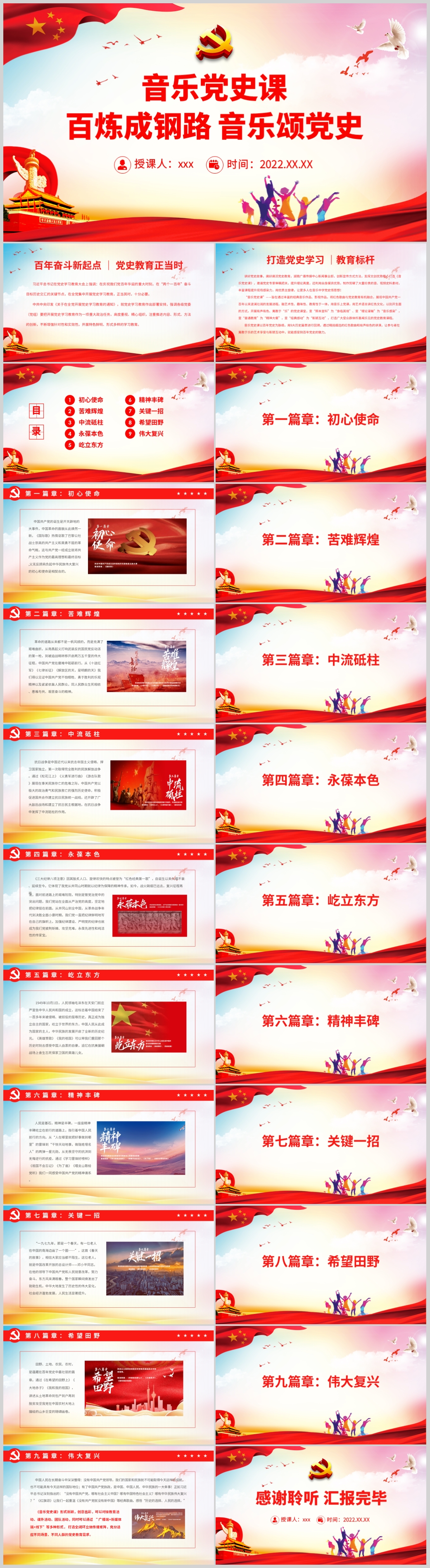 百炼成钢路音乐颂党史音乐党史课专题党课PPT模板