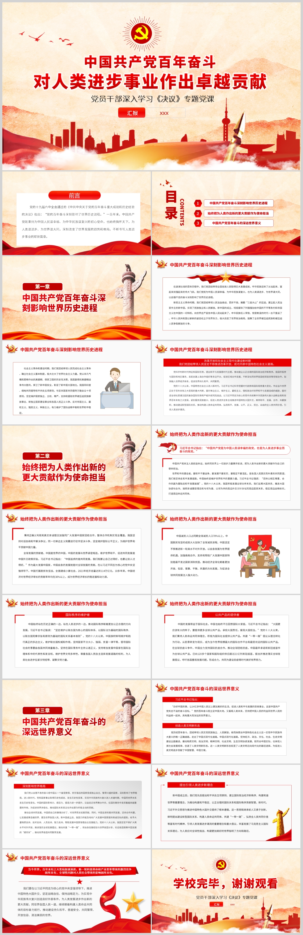 基层党员干部深入学习《决议》精神专题党课PPT模板(内含WORD演讲稿)