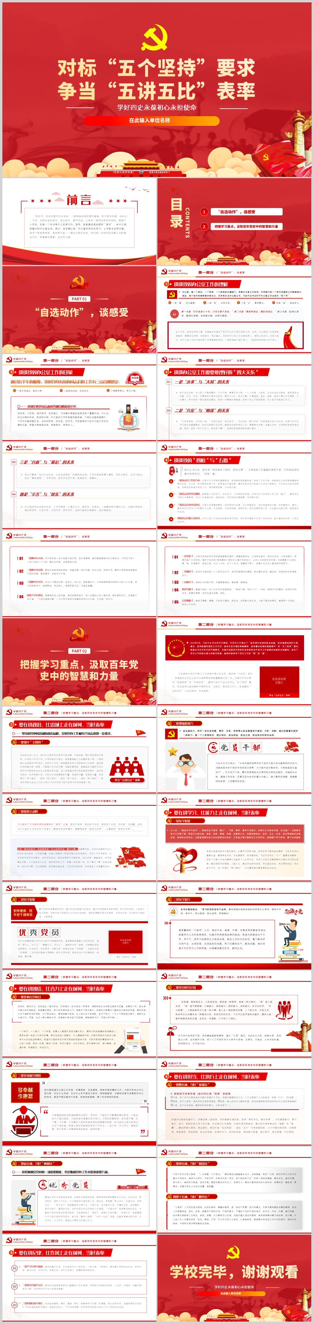 学习“五个坚持”要求 争当“五讲五比”表率党员教育PPT模板(内含WORD演讲稿