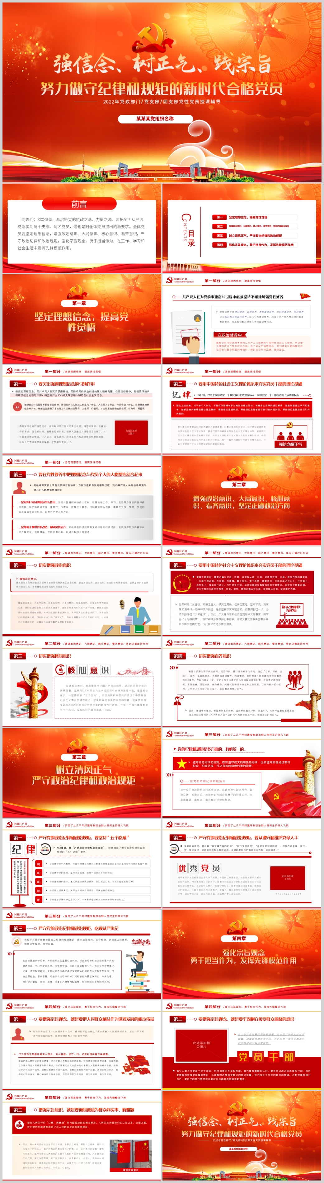 2022党员教育努力做守纪律和规矩的新时代合格党员PPT模板(内含WORD演讲稿)