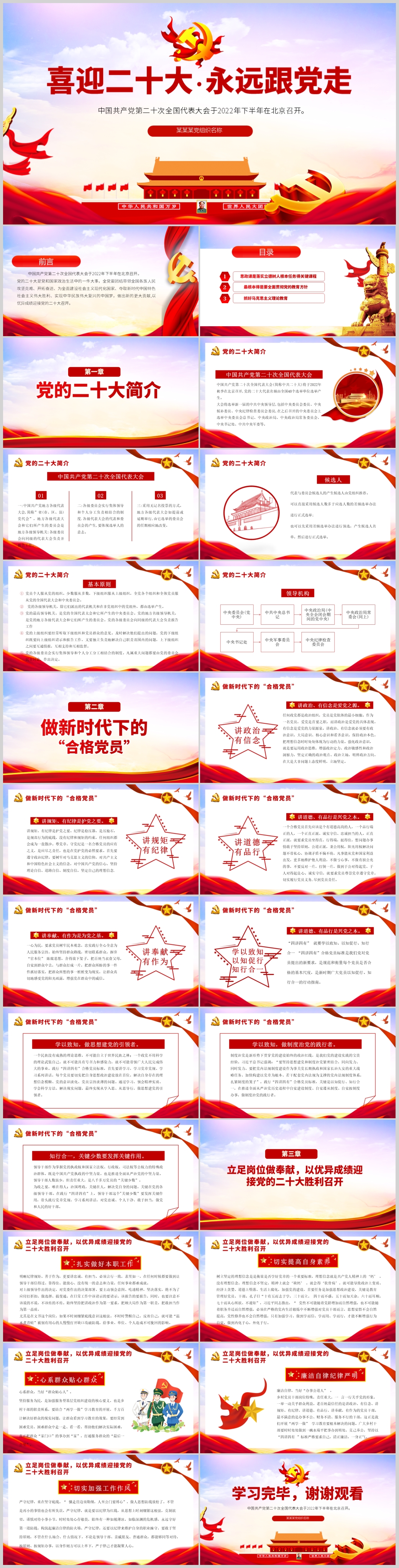 喜迎二十大做新时代合格党员支部党课PPT模板