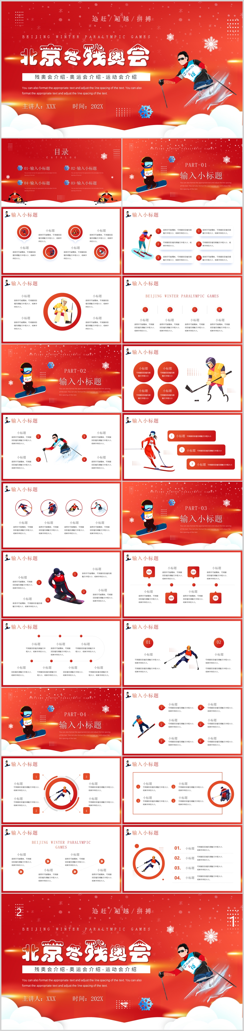 红色大气北京残冬奥会主题通用介绍培训PPT模板