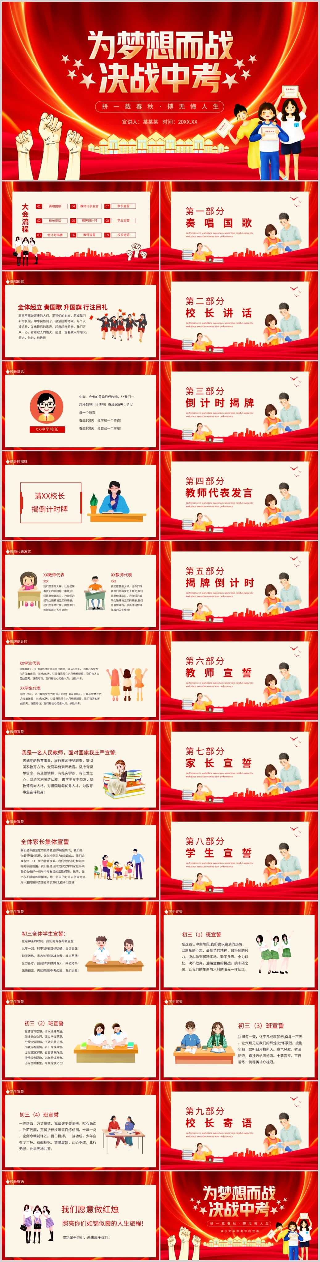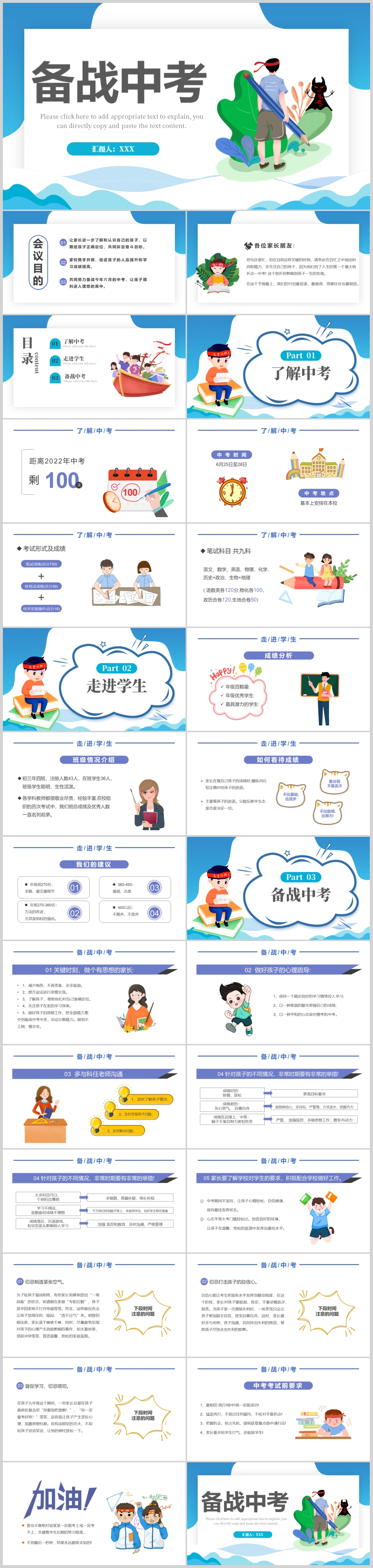 卡通高考加油备战中考中小学生主题班会家长会课件PPT模板