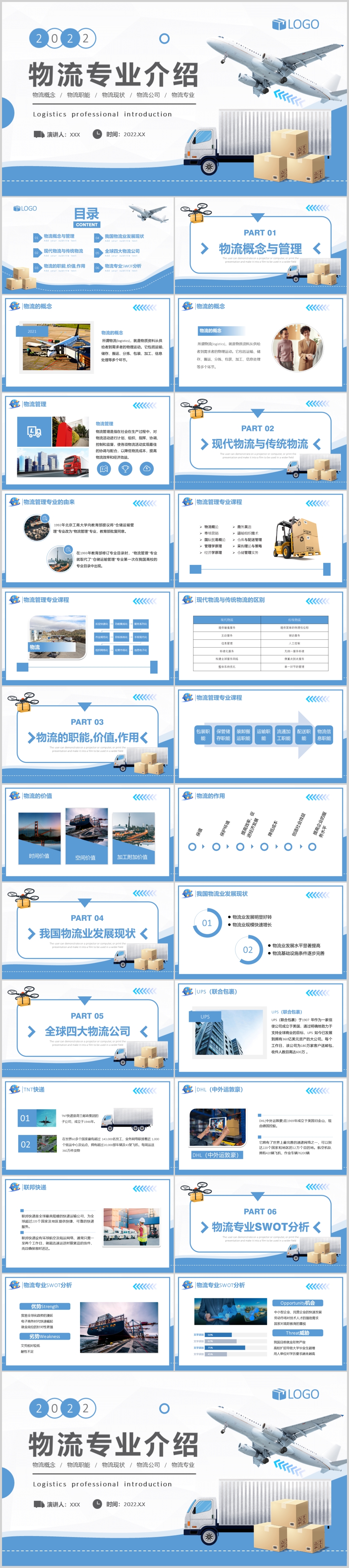 蓝色智能仓储物流运输快递公司介绍PPT模板