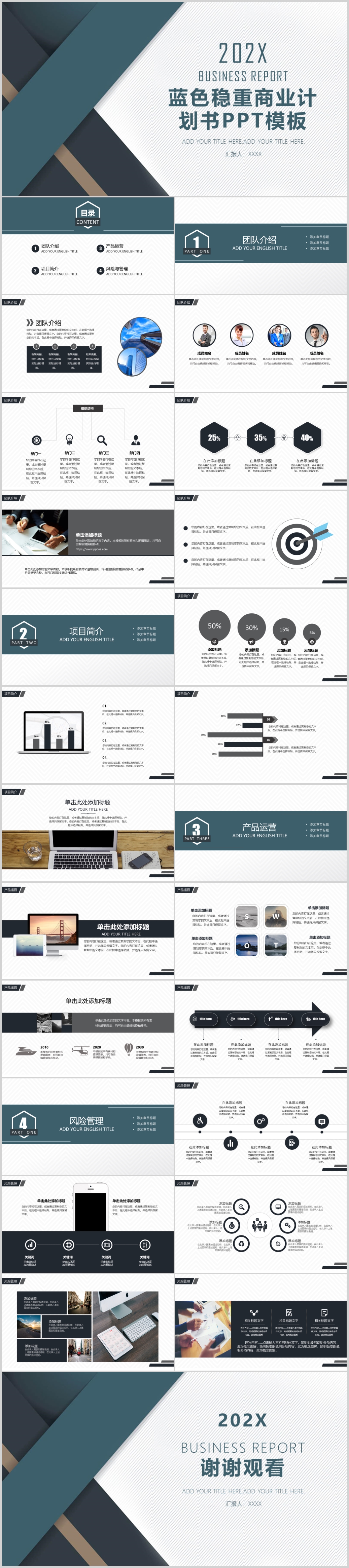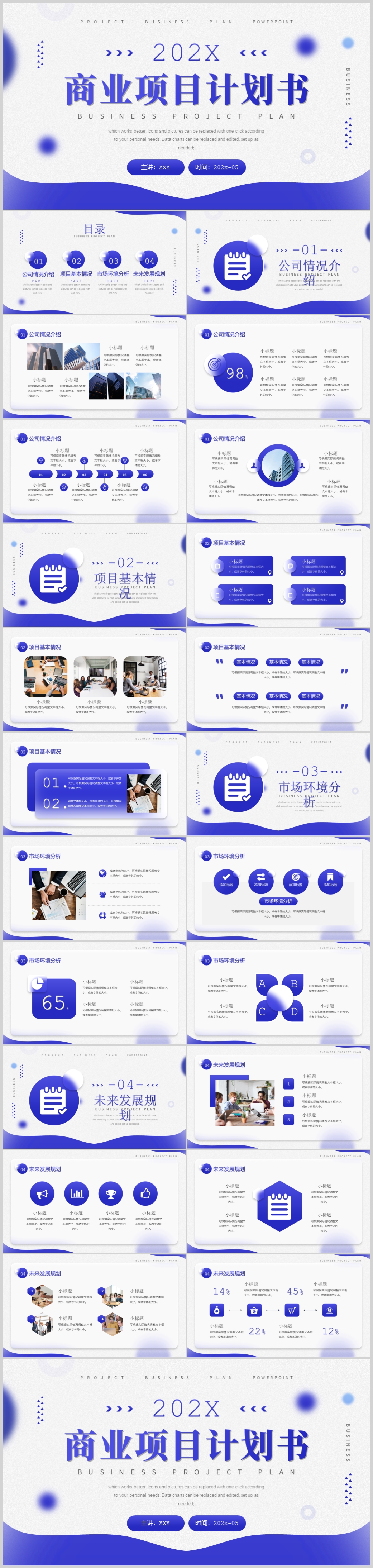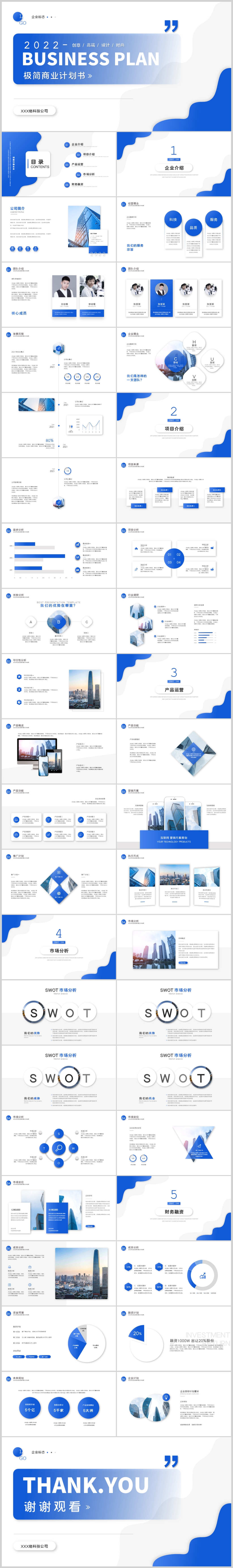 2022年蓝色高端大气企业宣传商业计划书PPT模板