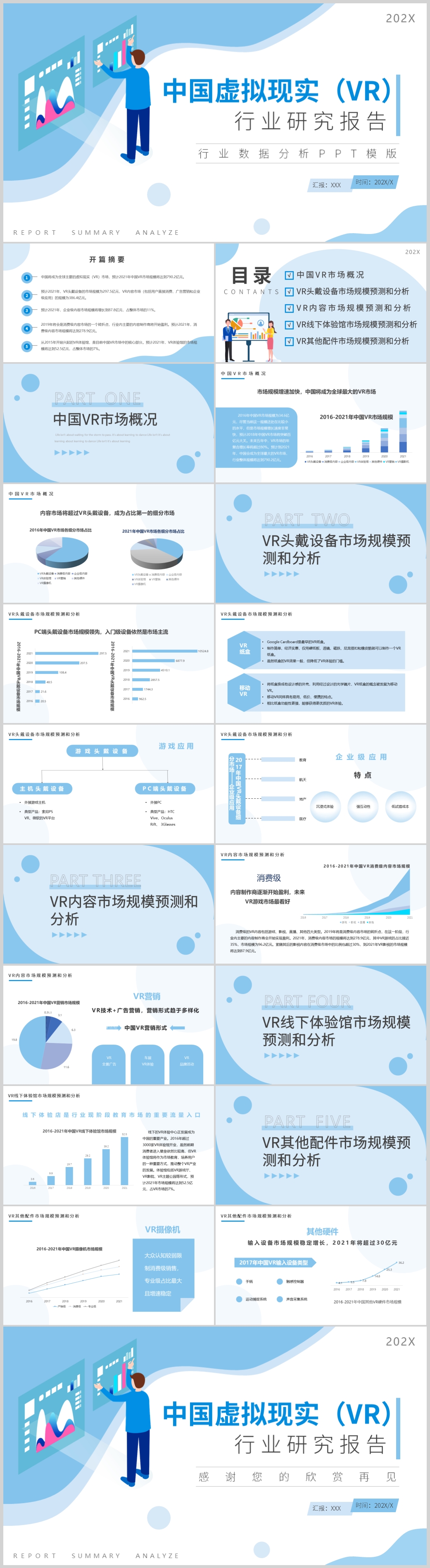 蓝色虚拟现实(VR)行业研究报告调研工作总结计划PPT模板