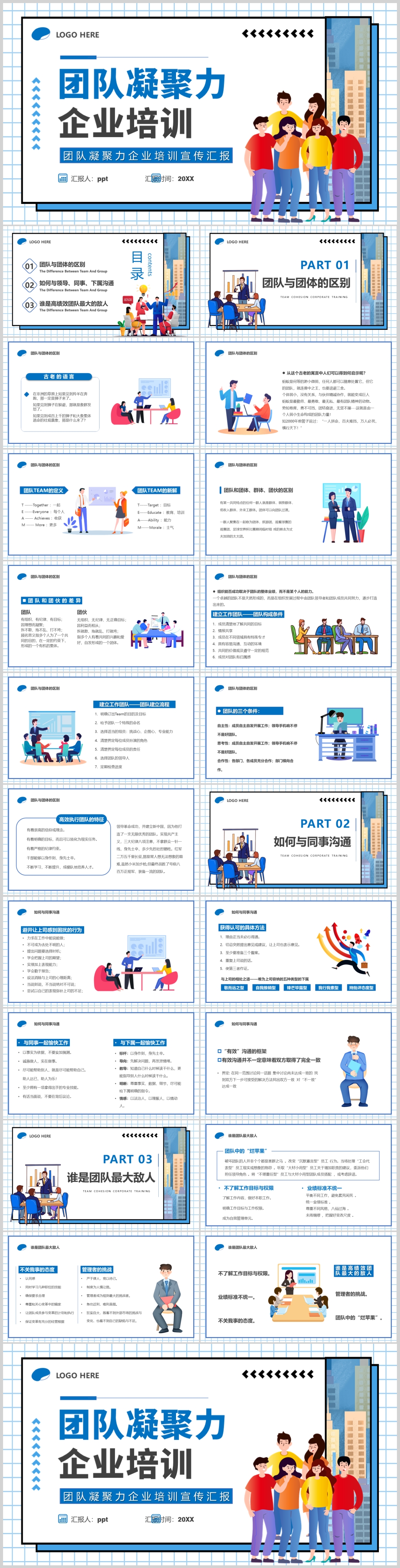 蓝色企业员工团队凝聚力打造卓越文化培训PPT模板