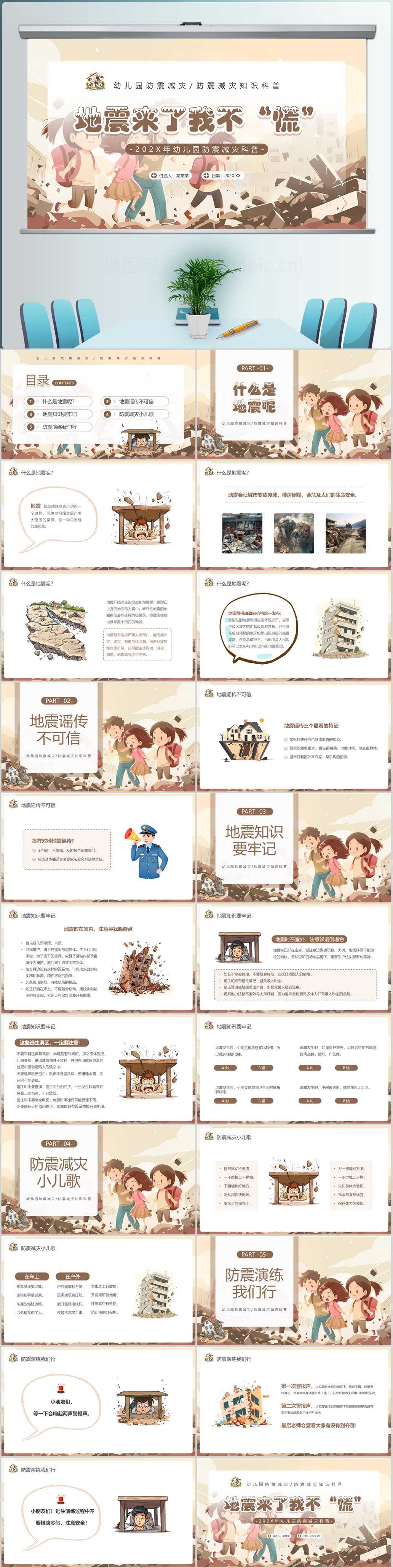 幼儿园防震减灾日主题宣传教育课件PPT模板