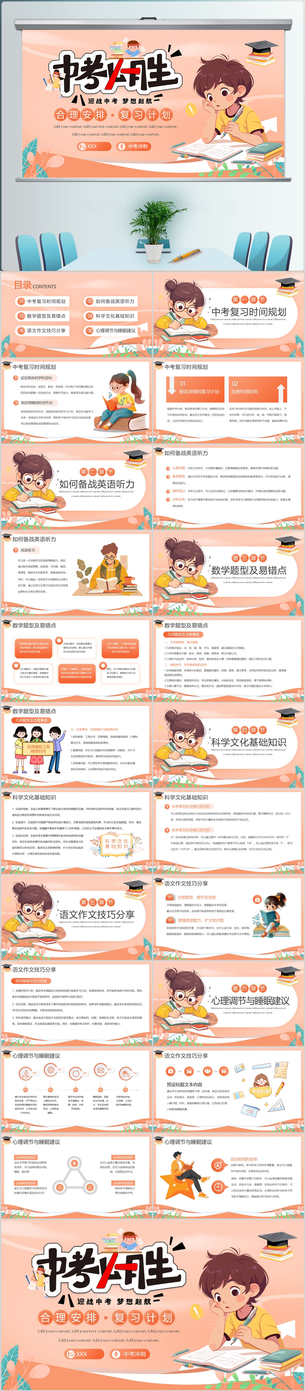2024卡通中考必胜备考最后冲刺教育主题班会ppt模板