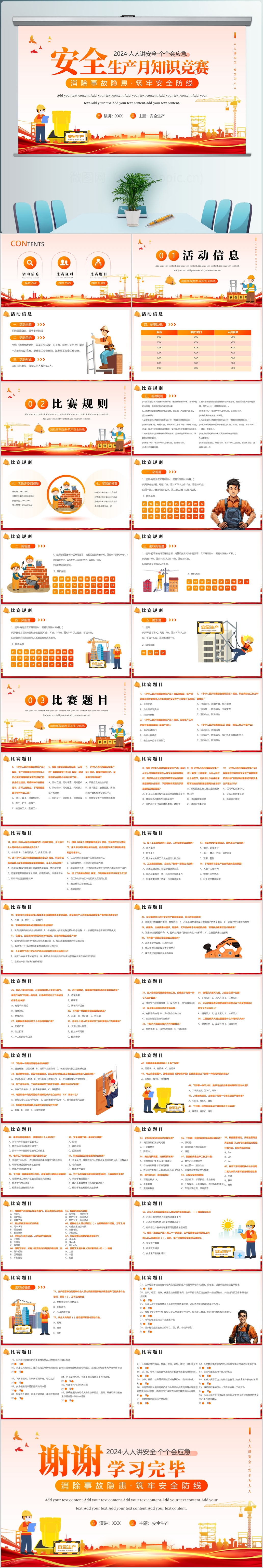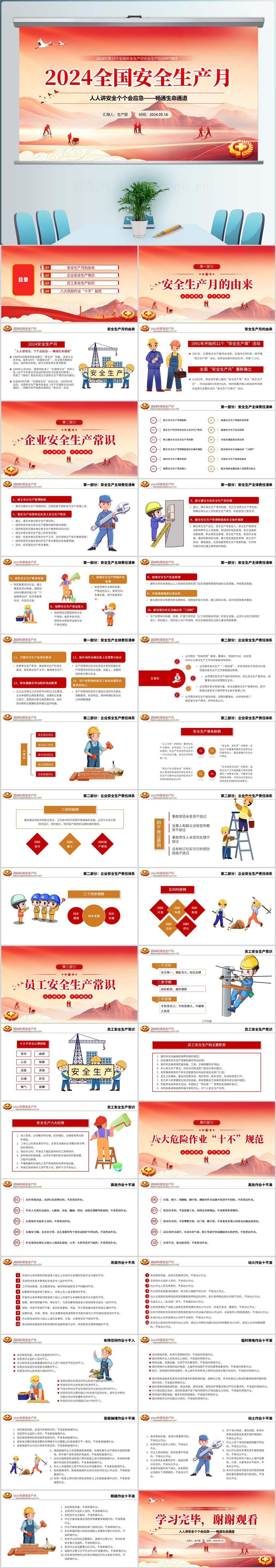 2024安全生产月主题活动宣传课件ppt模板(内含WORD演讲稿)