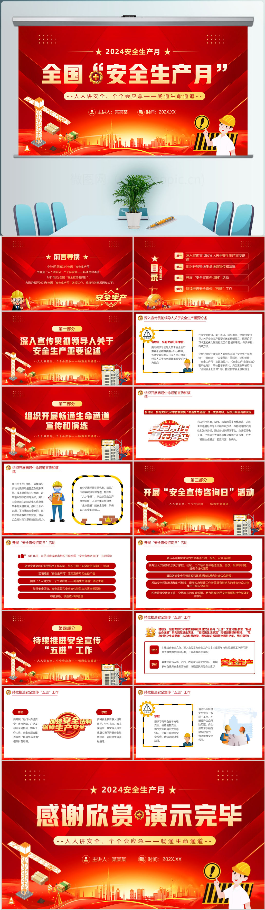 2024安全生产月主题畅通生命通道活动宣传课件ppt模板(内含WORD演讲稿)