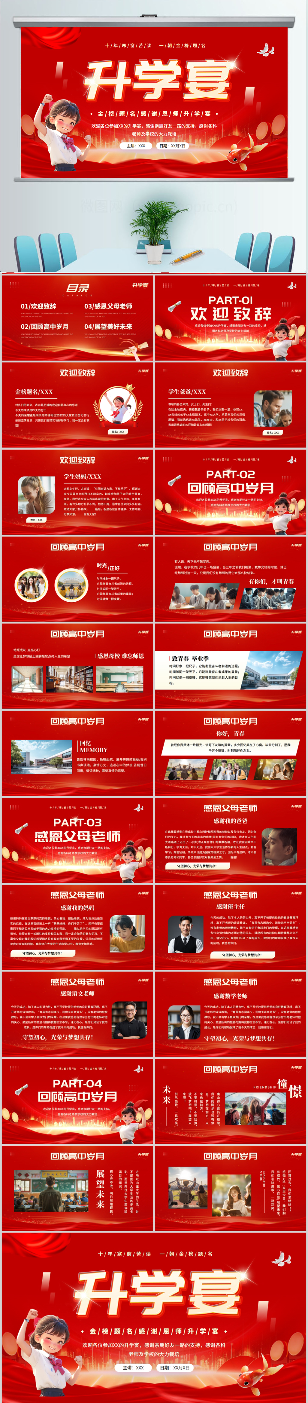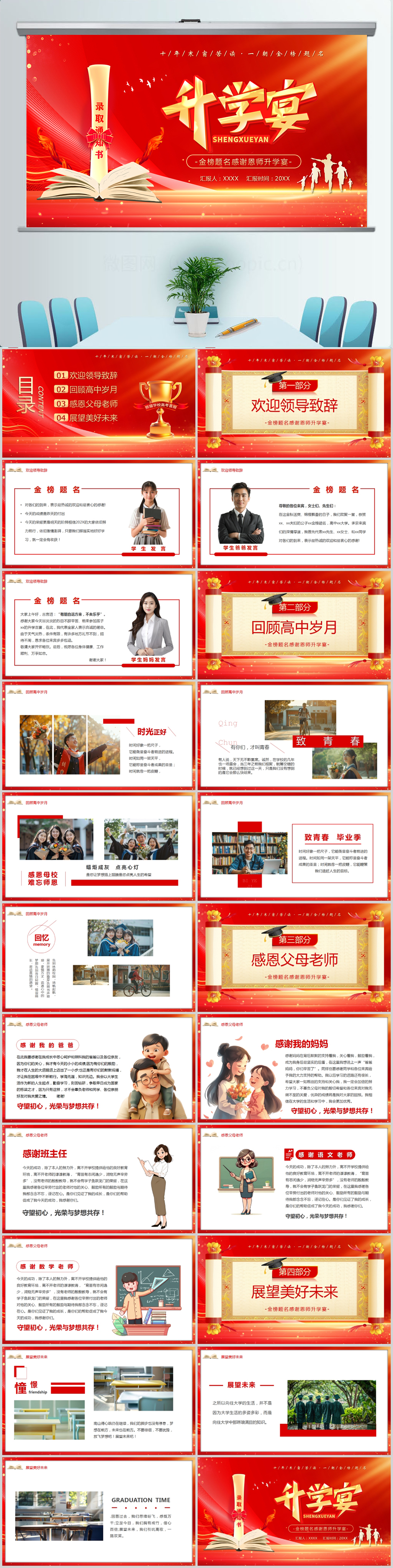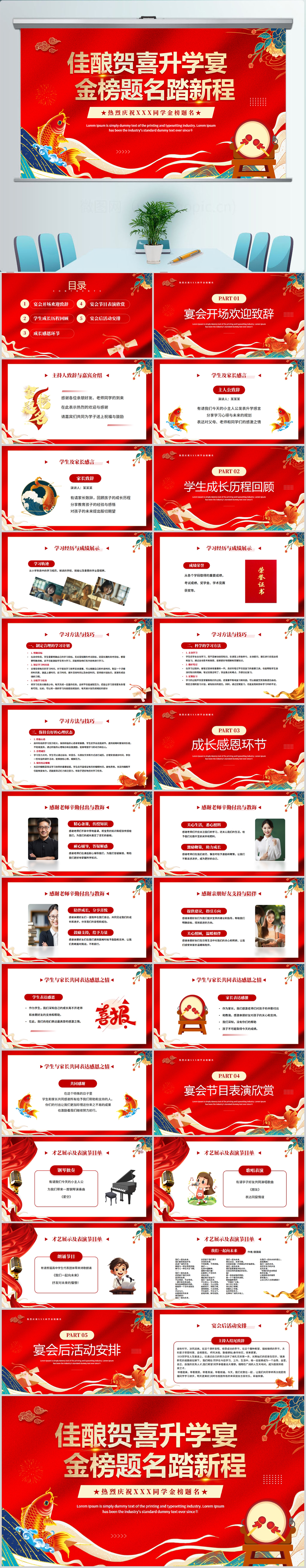 金榜题名谢师宴状元宴升学宴ppt模板设计