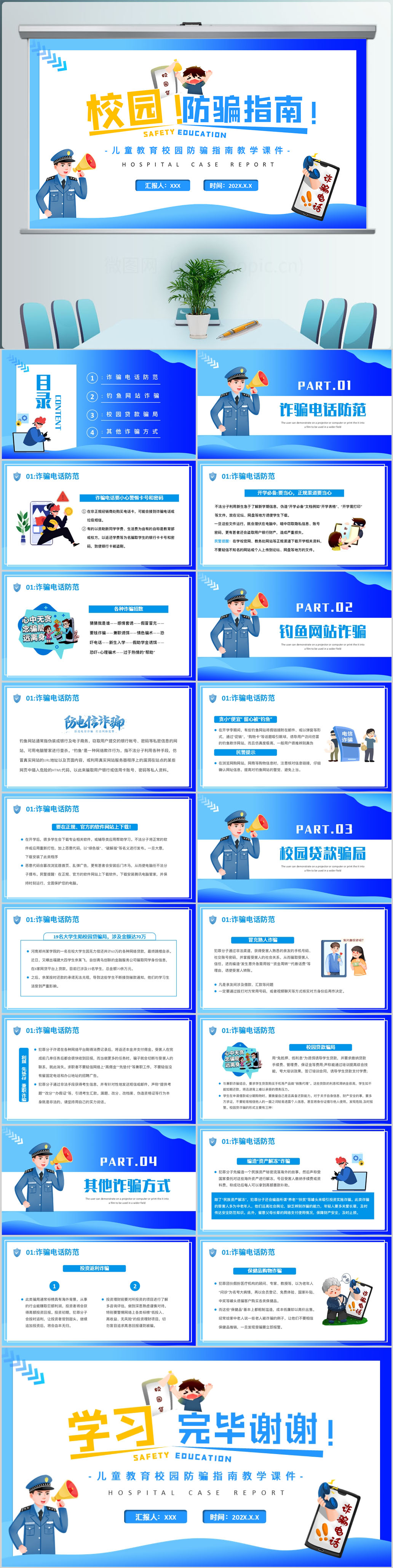 蓝色中小学生校园预防诈骗安全教育培训课件ppt模板