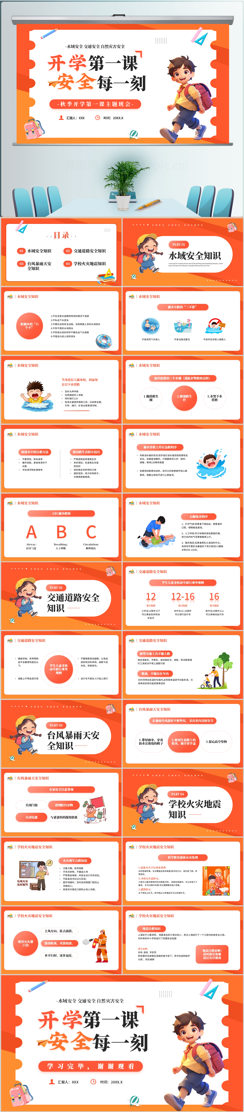 2024卡通风儿童秋季开学第一课安全每一刻主题班会课件ppt模板