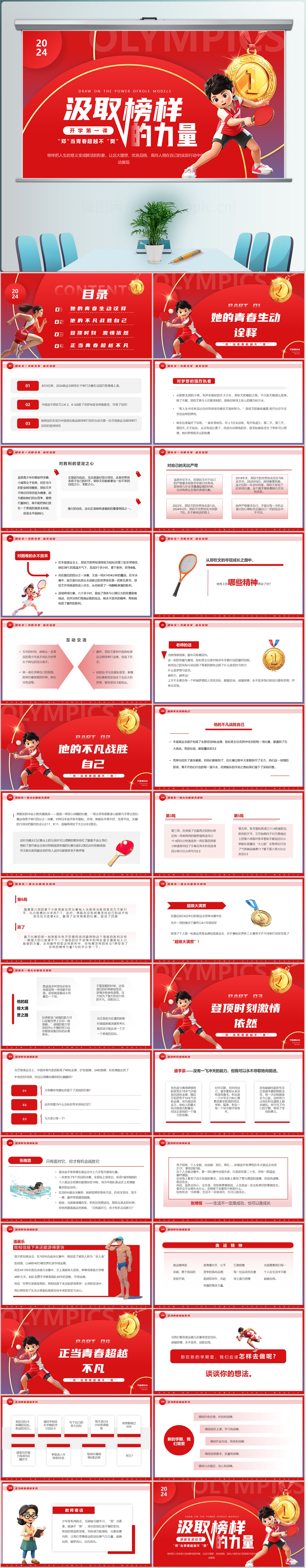 红色开学第一课弘扬奥运精神吸取榜样的力量班会ppt模板