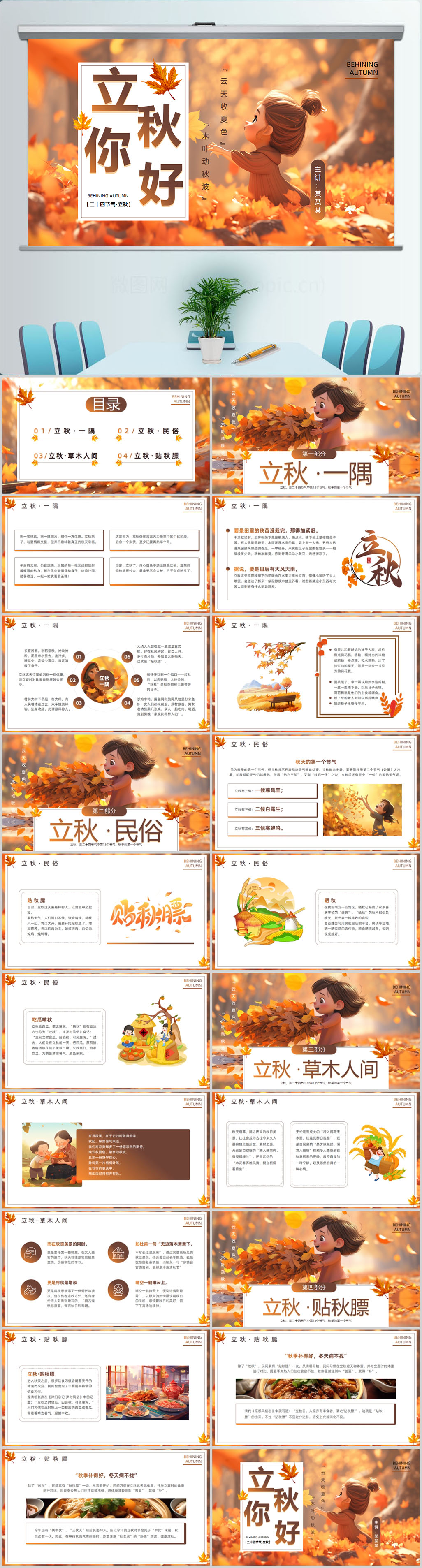 二十四节气立秋教育培训宣传知识介绍PPT模板设计