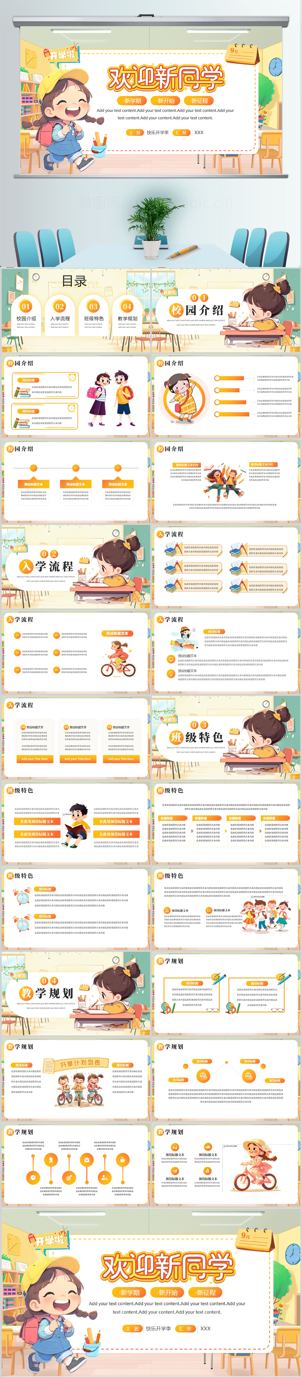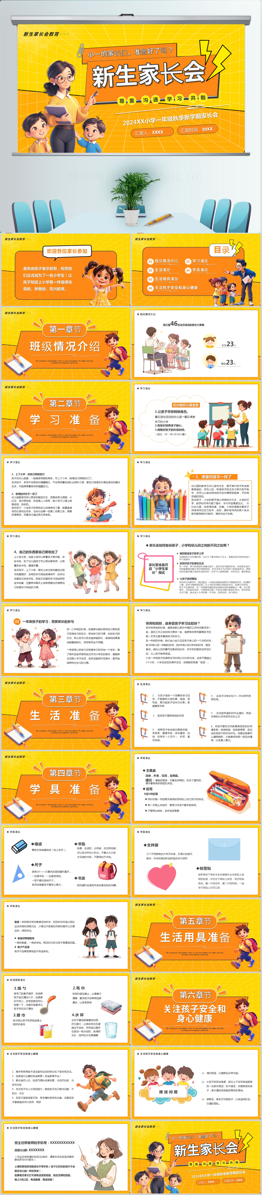欢迎新同学小学新生开学家长会入学准备ppt模版