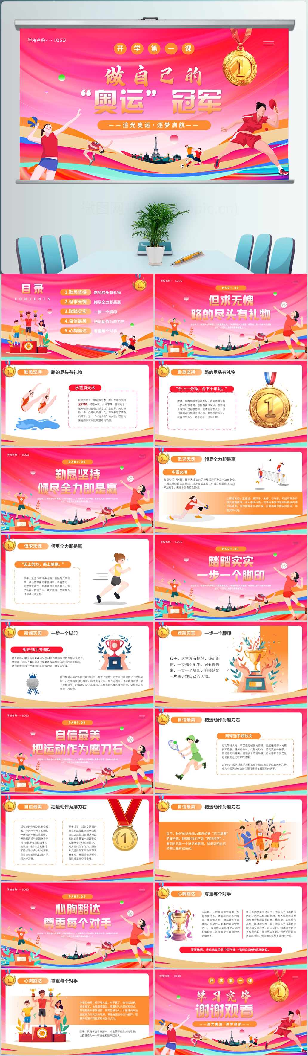 粉色开学第一课弘扬奥运精神做自己的奥运冠军主题课件ppt模板
