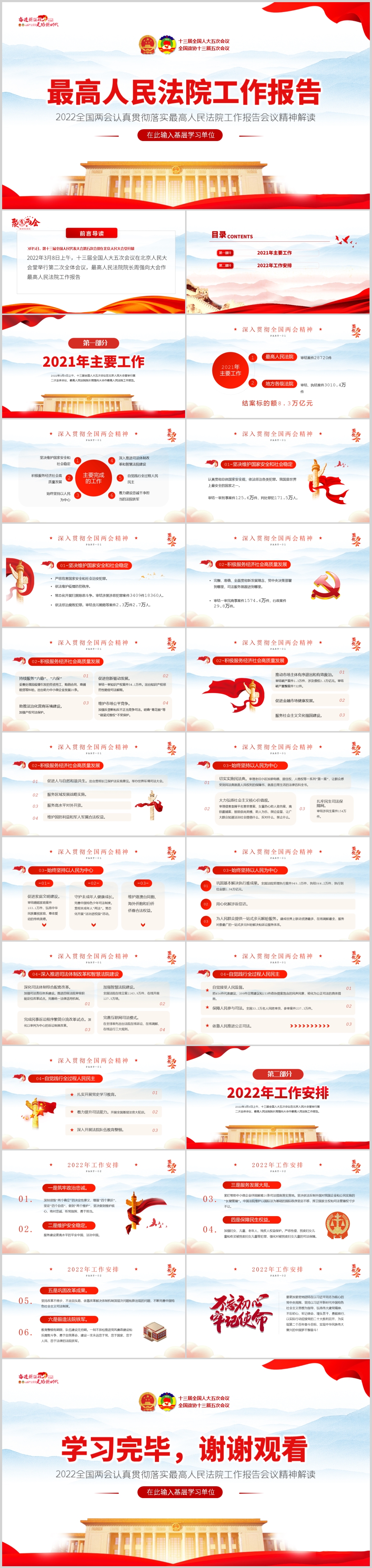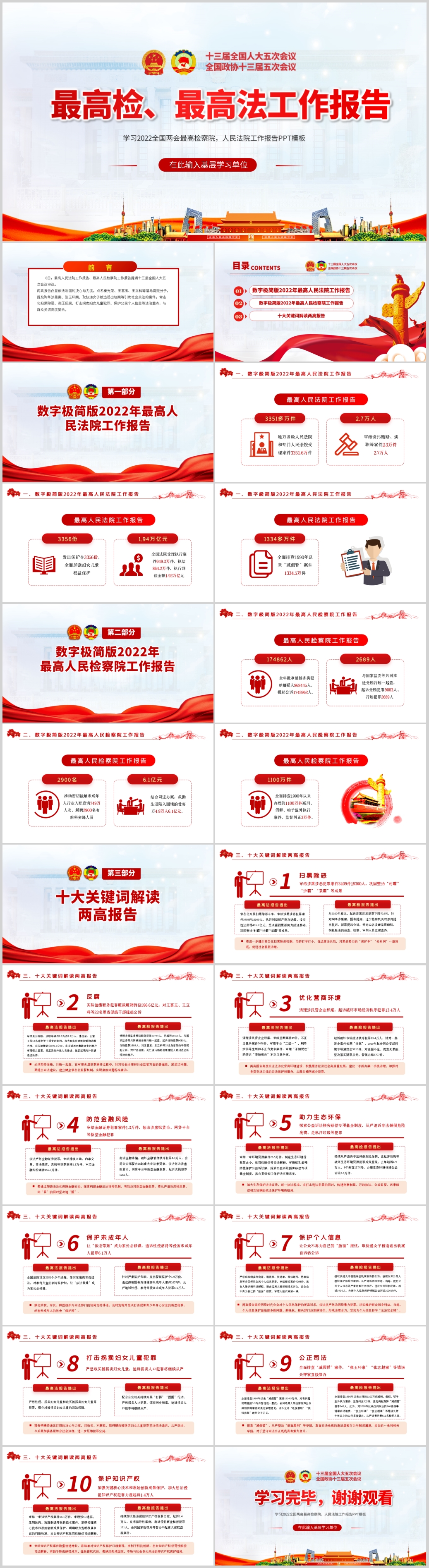 聚焦2022全国两会解读最高检最高法工作报告PPT模板(内含WORD演讲稿)