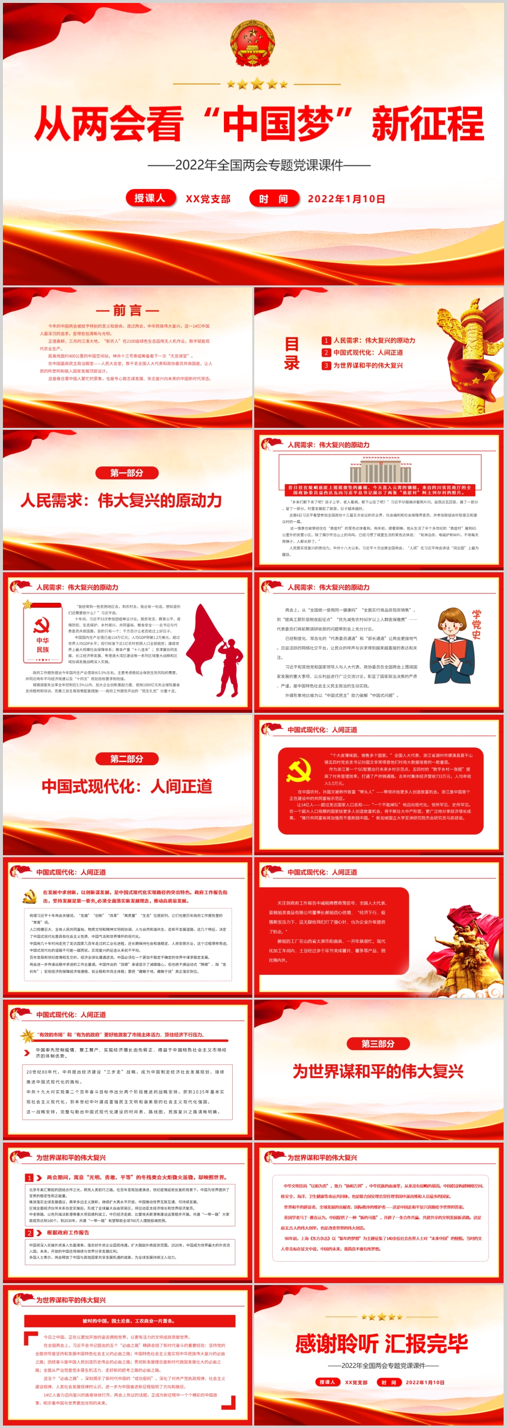 2022中国梦新征程两会精神PPT模板(内含WORD演讲稿)