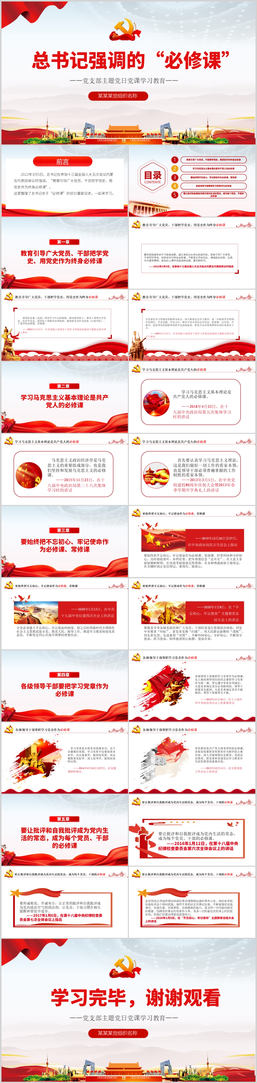 党支部党委主题党日党课党史党章强调必修课PPT模板(内含WORD演讲稿)