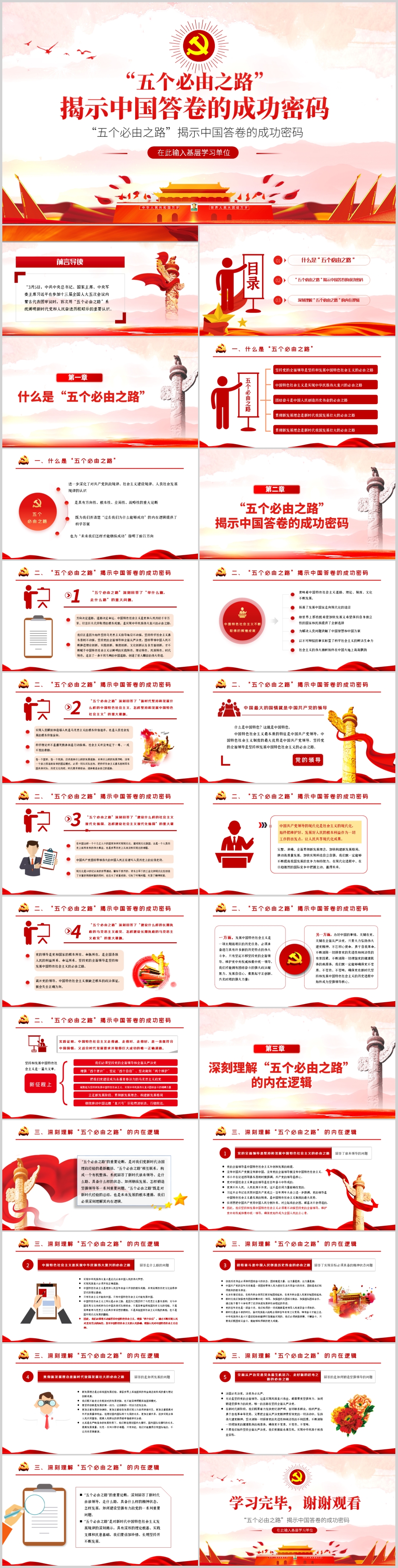 “五个必由之路”揭示中国答卷的成功密码党课PPT模板(内含WORD演讲稿)