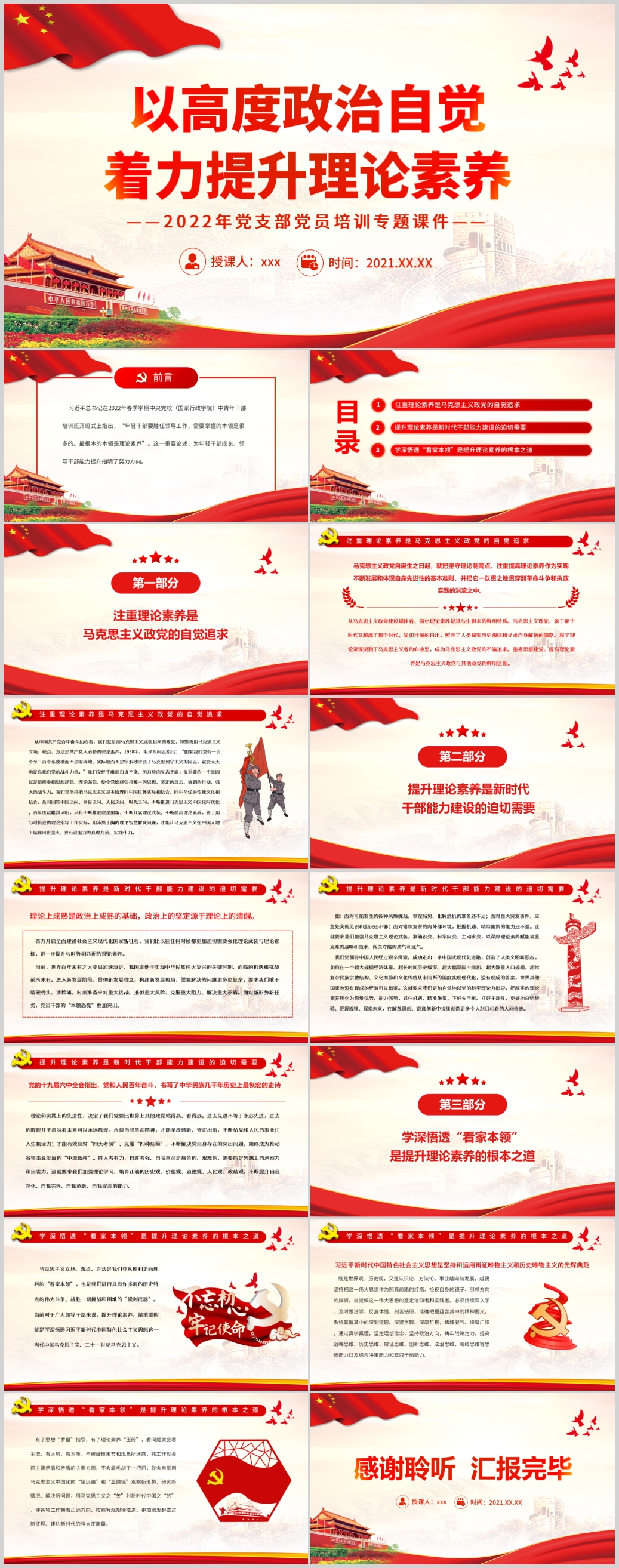 2022年党支部党员培训着力提升理论素养专题课件PPT模板(内含WORD演讲稿)