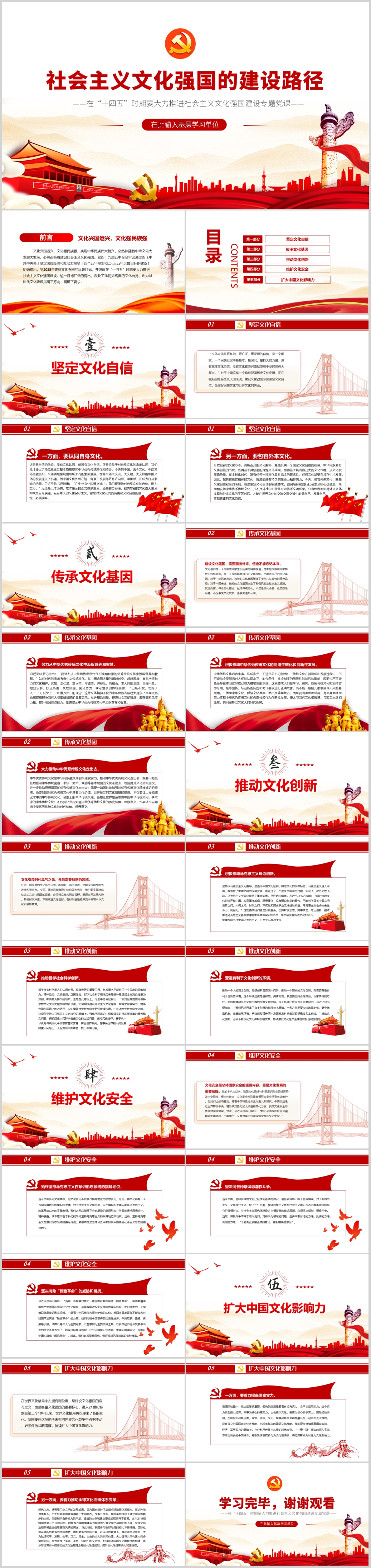 十四五时期社会主义文化强国的建设路径主题PPT模板(内含WORD演讲稿)
