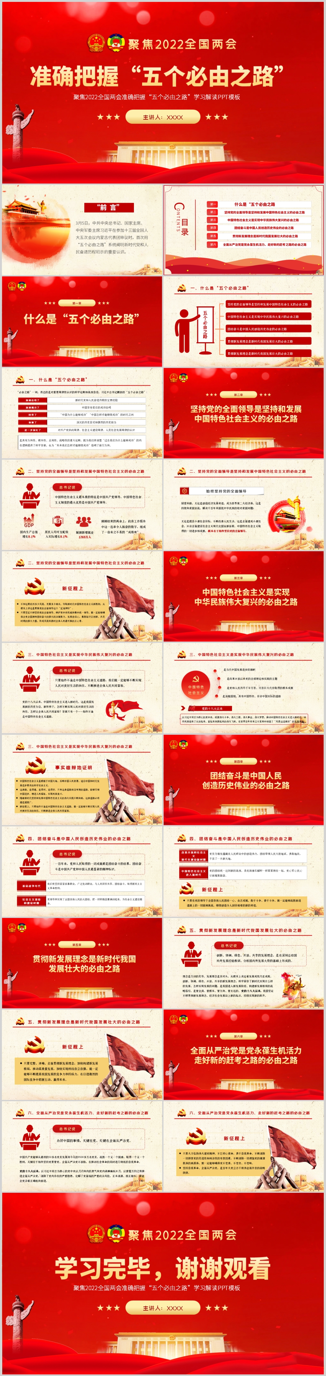 准确把握“五个必由之路”2022两会专题党课PPT模板(内含WORD演讲稿)