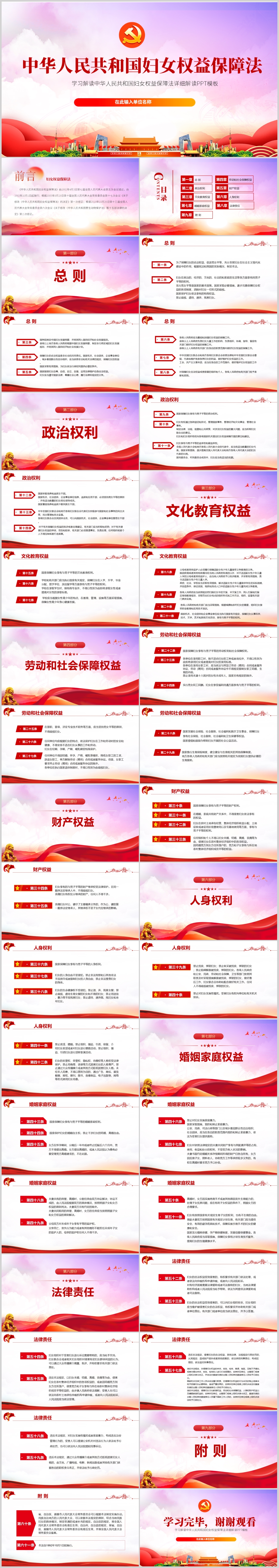 中华人民共和国妇女权益保障法解读PPT模板(内含WORD演讲稿)