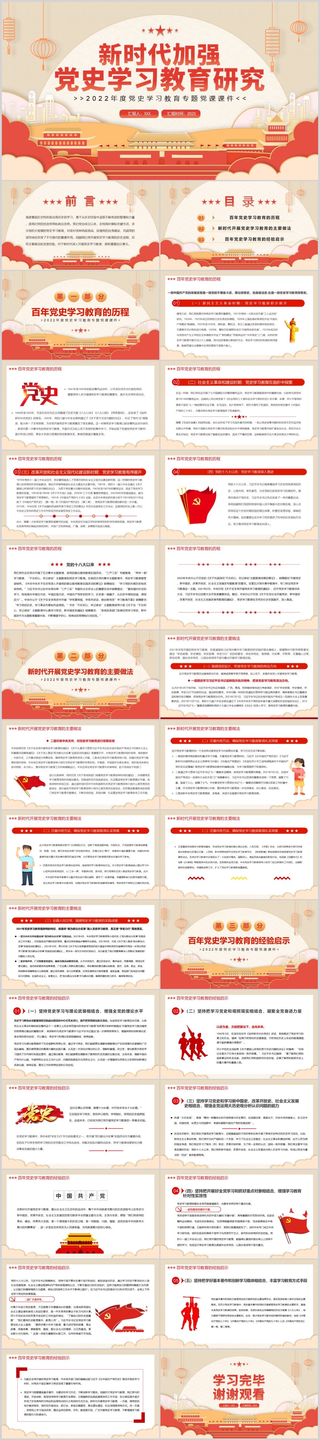 2022年新时代加强党史学习教育研究专题党课PPT模板(内含WORD演讲稿)