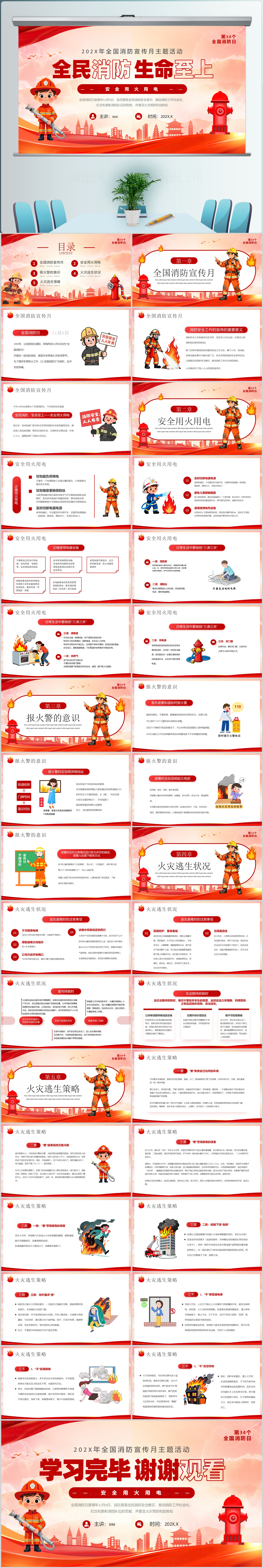 学习全国消防日宣传全民消防生命至上主题课件ppt模板