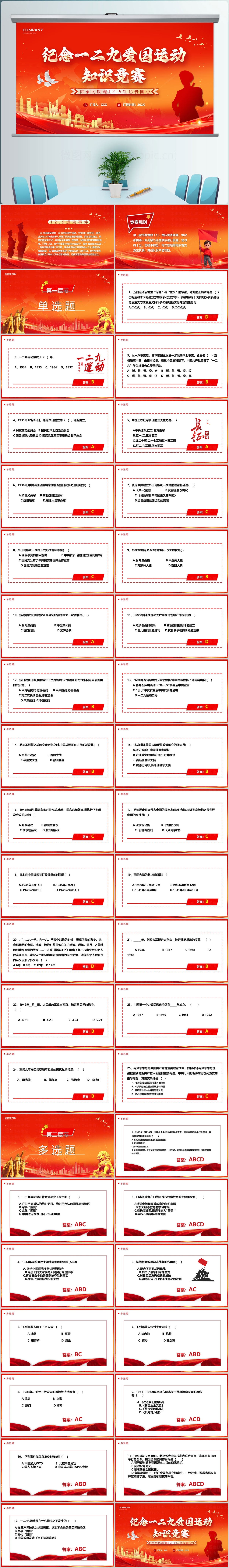 红色风格纪念129爱国运动知识竞赛主题课件ppt模板