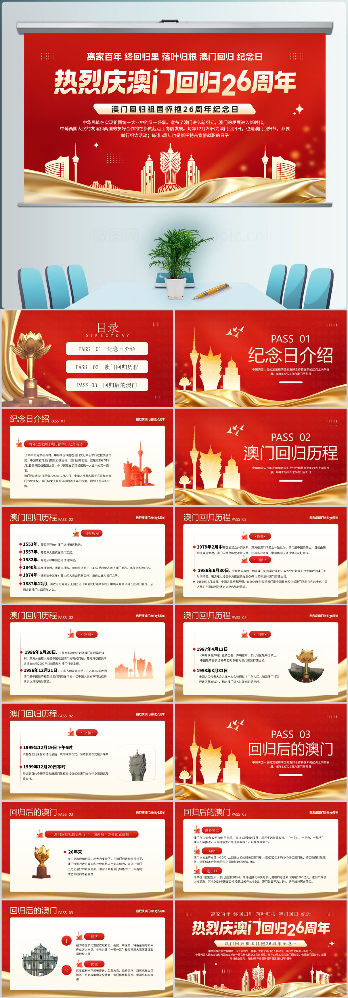 热烈庆祝澳门回归祖国怀抱26周年纪念日ppt模板