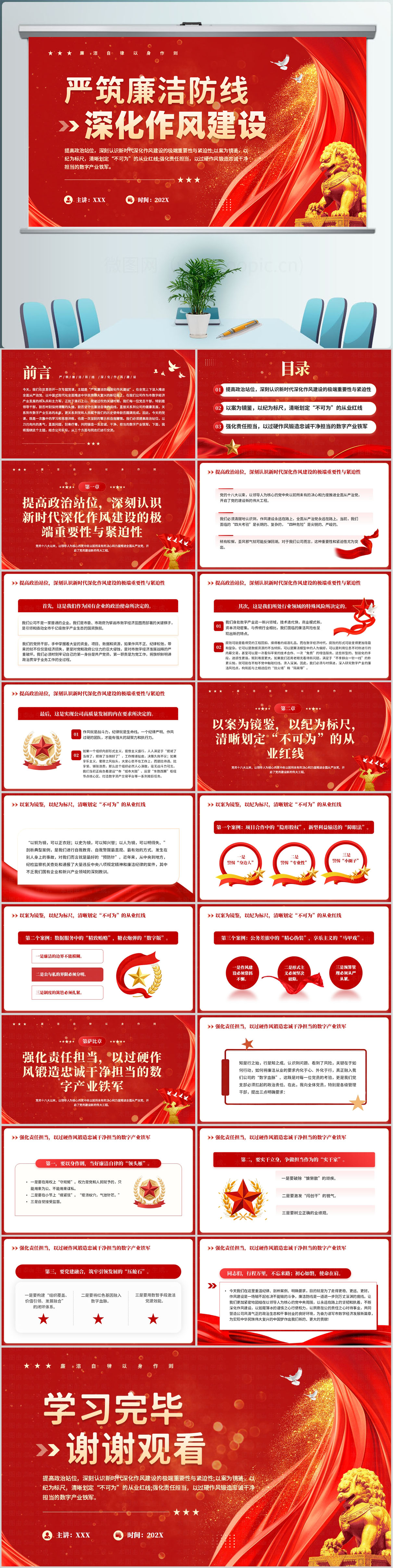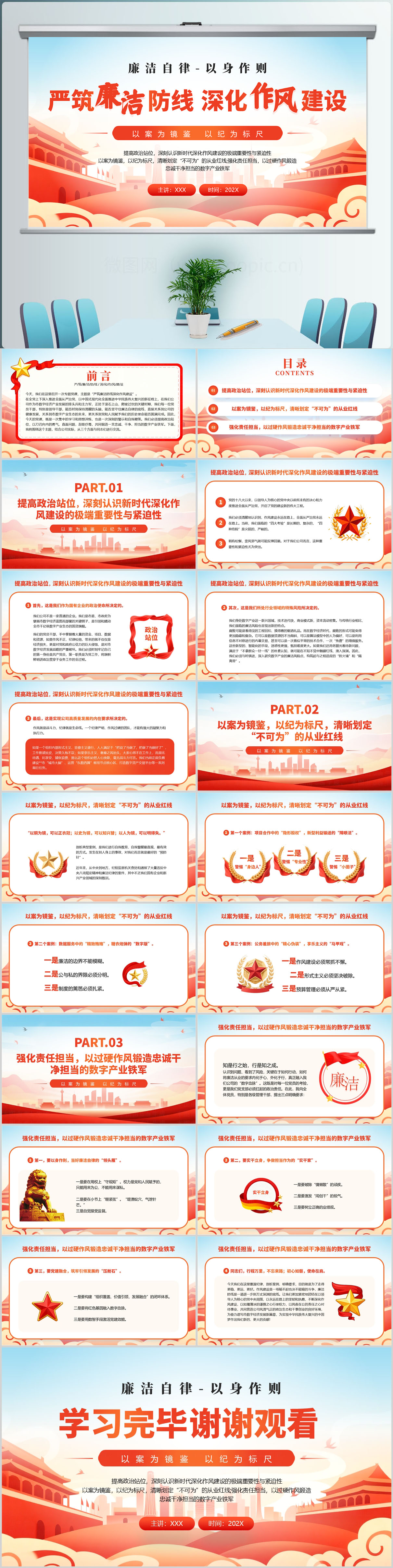 严筑廉洁防线深化作风建设党员教育党课ppt模板