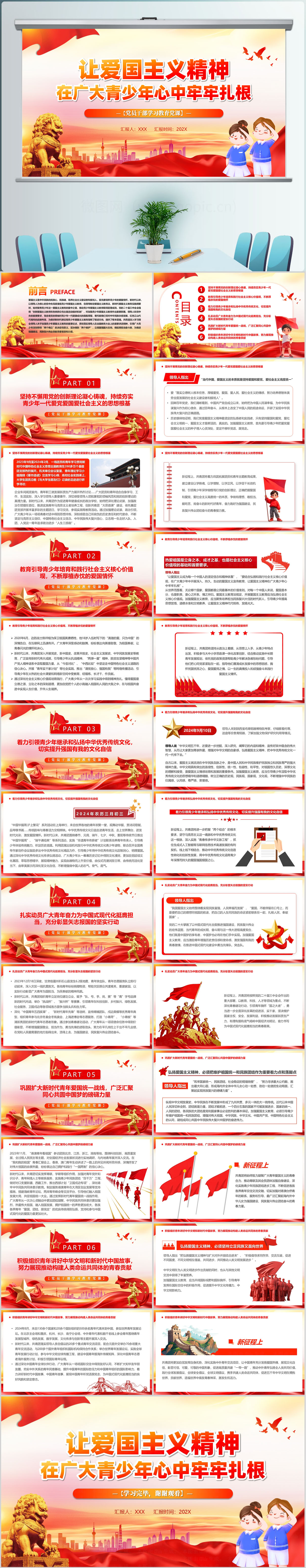 让爱国主义精神在广大青少年心中牢牢扎根党员教育党课ppt模板