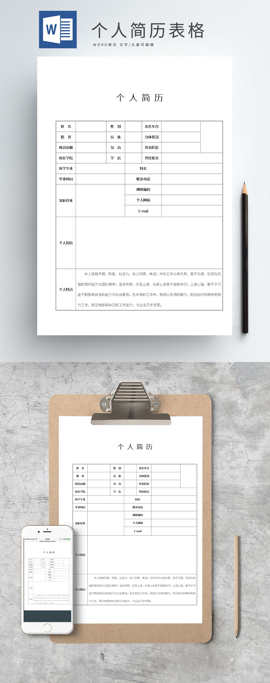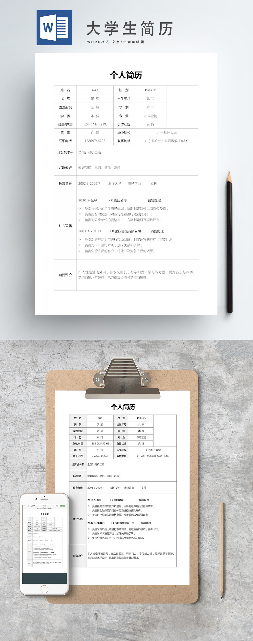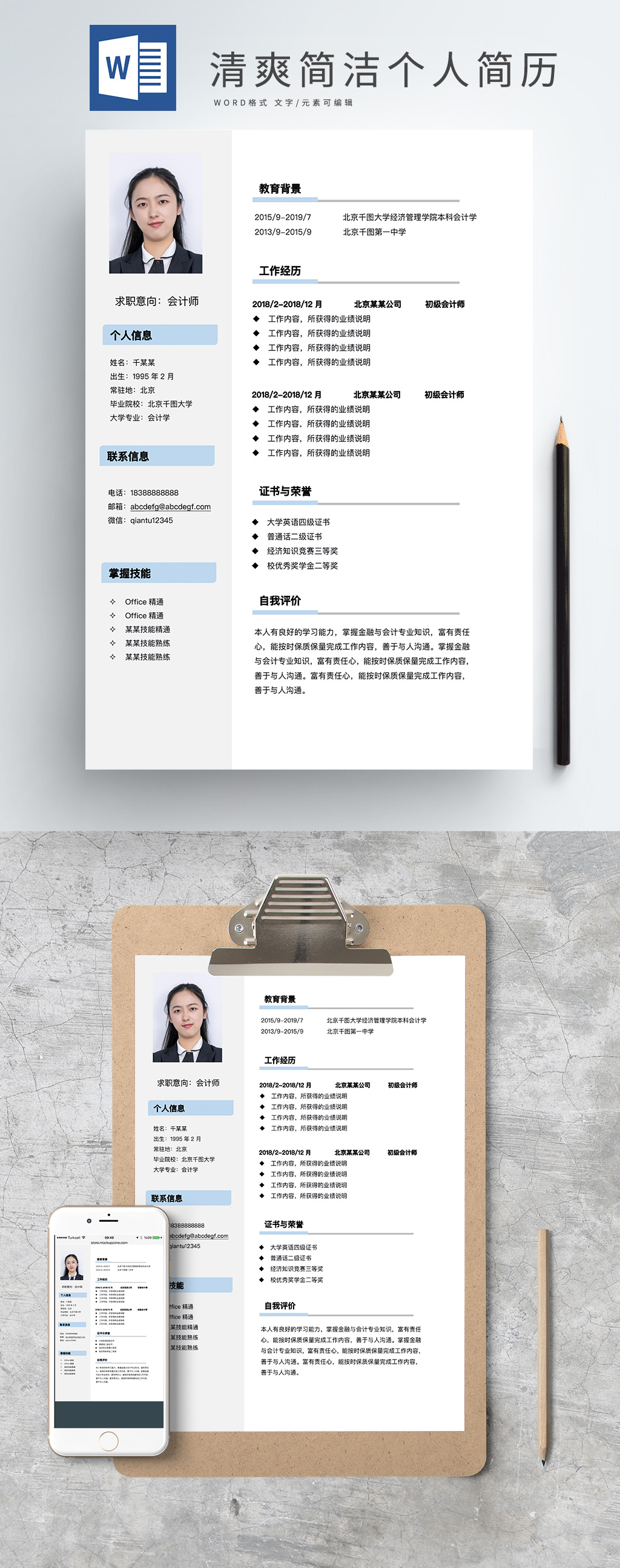 时尚大气简约UI设计个人求职竞聘简历WORD模板