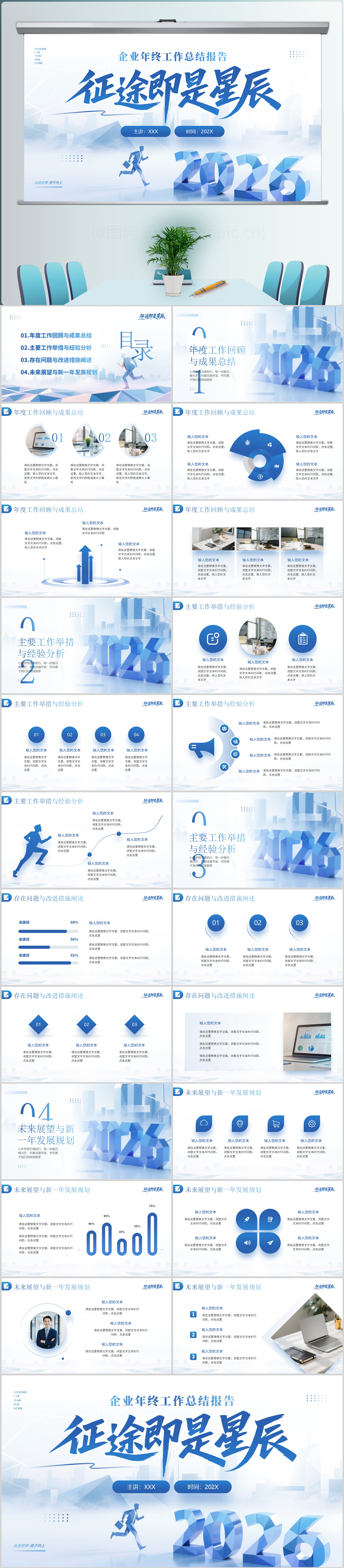 2026蓝色大气企业年终总结汇报新年计划通用ppt模板