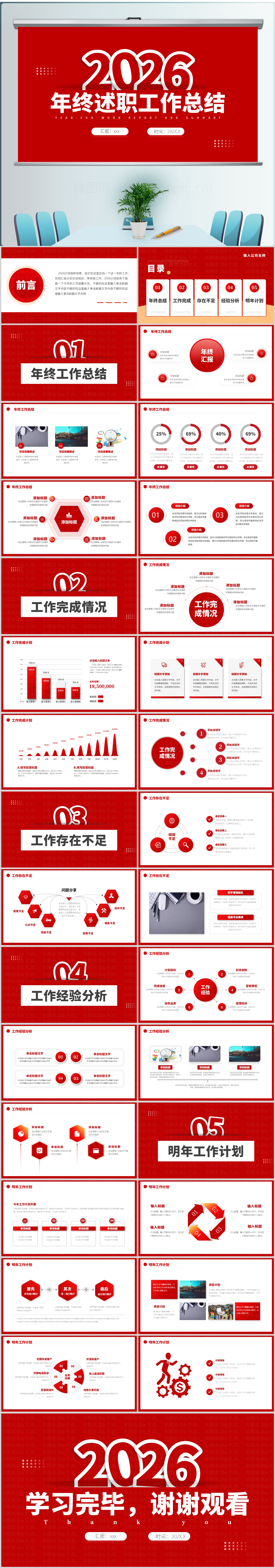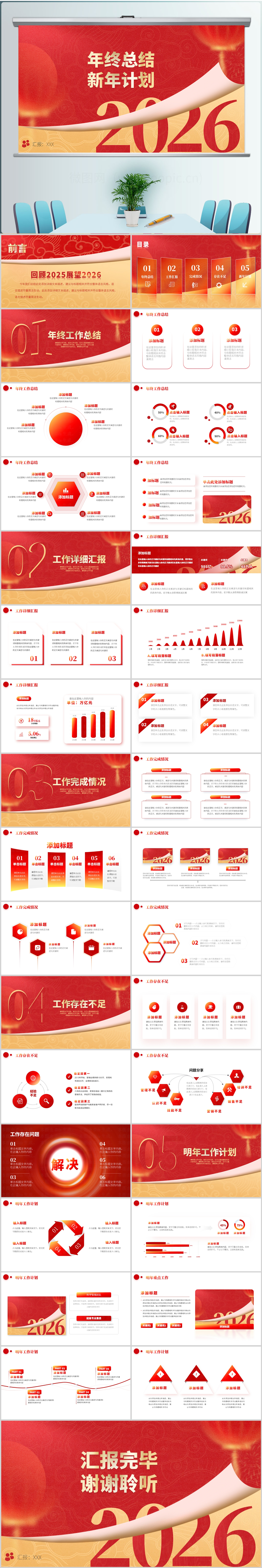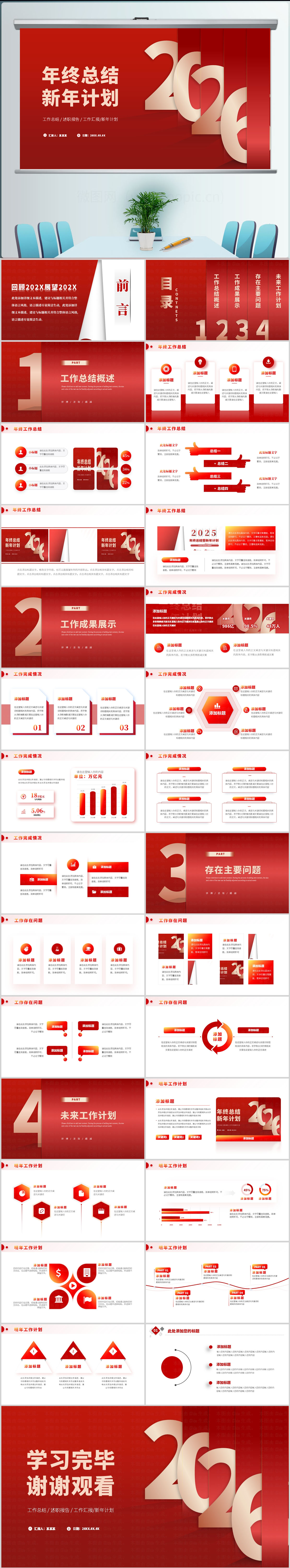 2026 年终总结ppt 新年计划 年终总结 工作总结ppt 工作计划 创新 创意 红色ppt 工