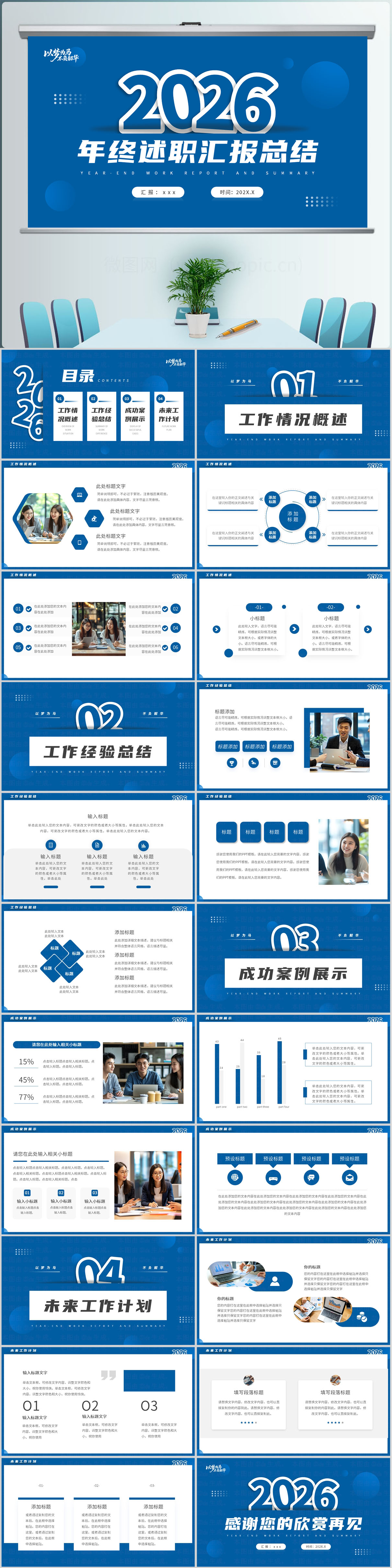 2026蓝色大气年终总结工作计划动态ppt模板