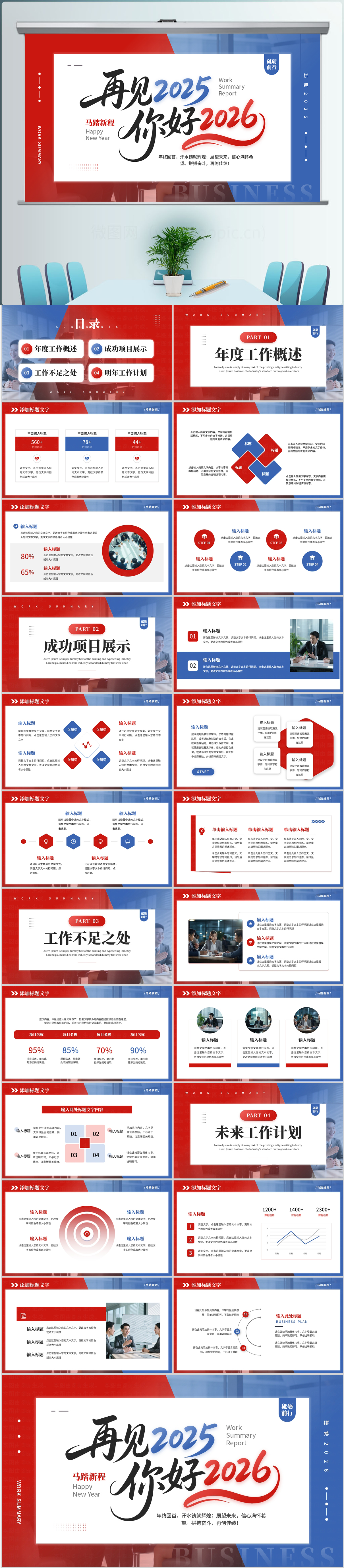 创意2026红蓝年终总结暨新年计划ppt模板