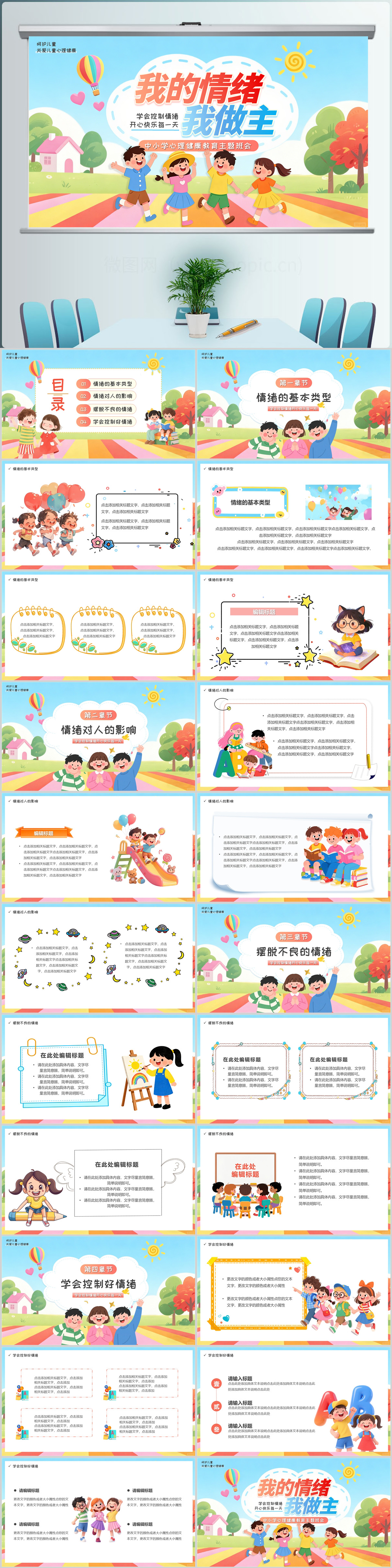 卡通我的情绪我做主儿童教育班会ppt模板
